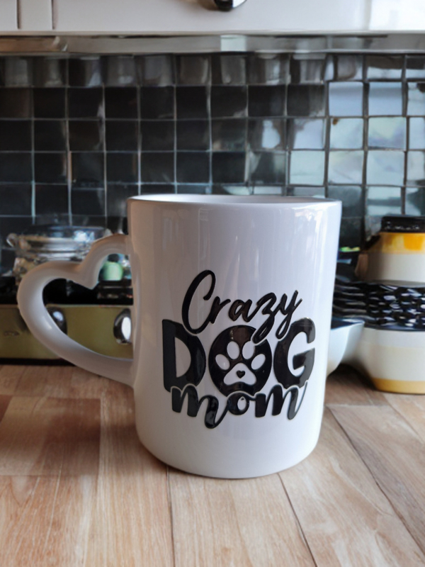Koffiemok in wit en zwart met dieren quote. Handmade